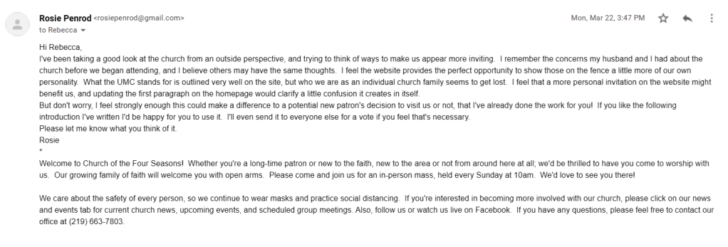 I’ve put together a little rundown of a volunteer copywriting experience I recently had, involving the homepage for my local religious establishment.